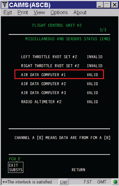 | Reporting LRU: | Flight Control Unit (FCU) 2 |