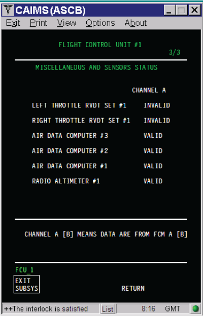 | Reporting LRU: | Flight Control Unit (FCU) 1 |