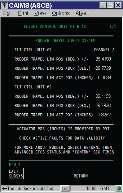 If the fault cleared and can not be duplicated, the rudder limiter can be simulated on CAIMS: