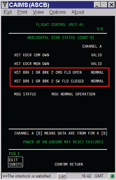 | Reporting LRU: | Flight Control Unit (FCU) 1 |