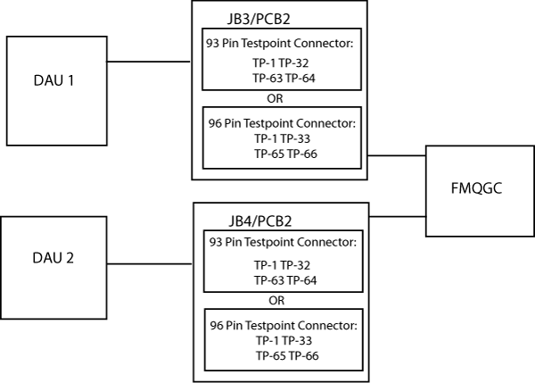 - Perform wiring checks between JB4/PCB2, DAU 2 (A18CP1) and FMQGC (A47EP1).