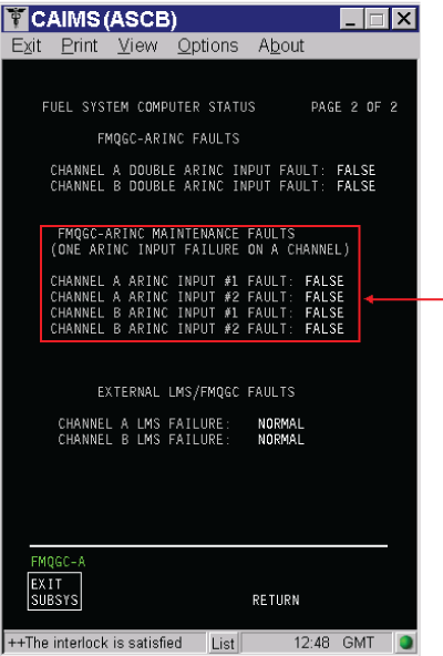 - If FMQGC CH B ARINC I/P #2 INTERFACE (external fault) is reported in CAIMS and no FMQGS COMPUTER/WRG FAULT (FMQGC Internal Fault) is reported, then the failure is external to the FMQGC. The DAU or wiring is the most probable cause of the failure.