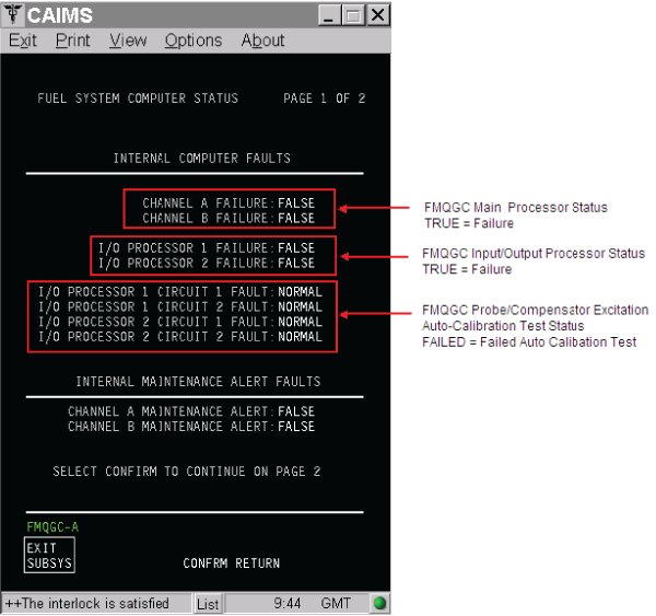 | Reporting LRU: | Fuel Management and Quantity Gauging Computer (FMQGC) |