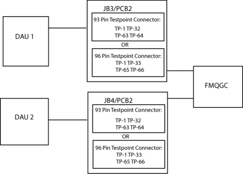 - Perform wiring checks between JB4/PCB2, DAU 2 (A18CP1) and FMQGC (A47EP1).