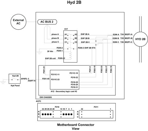 NOTE: AC Motor Driven Pump (ACMP) pressure switches close at 2400 psi (high) as pressure rises and opens at 1800 psi (low) as pressure decreases.