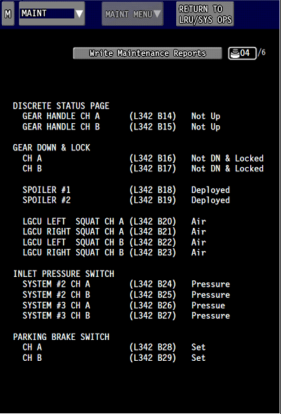 - Using CAIMS, access ATA 32, BCU, BRAKE CONTROL SYSTEM DATA PAGE 21 (DISCRETE INPUT STATUS).