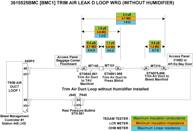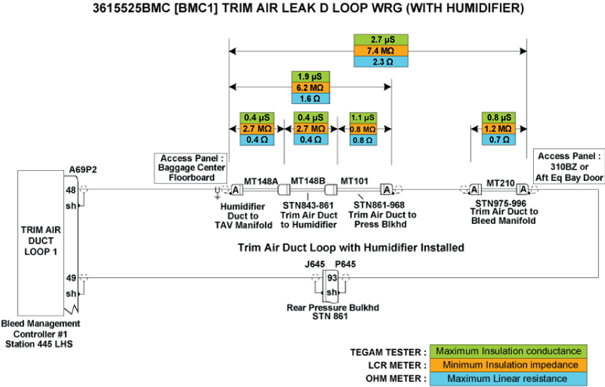 - Perform wiring checks of the remaining wires linking the Trim Air Loops circuit to BMC 1.