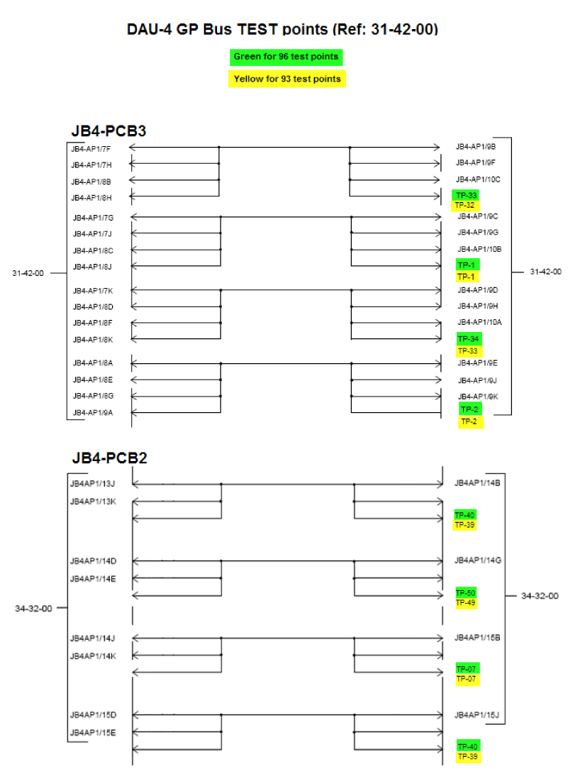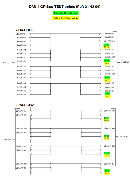 Test Points on Junction Box for troubleshooting reference 31-42-00 DAU4 GP Bus TP.