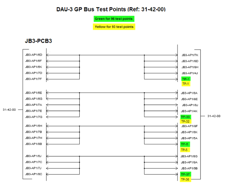 Test Points on Junction Box for troubleshooting reference 31-42-00 DAU3 GP Bus TP