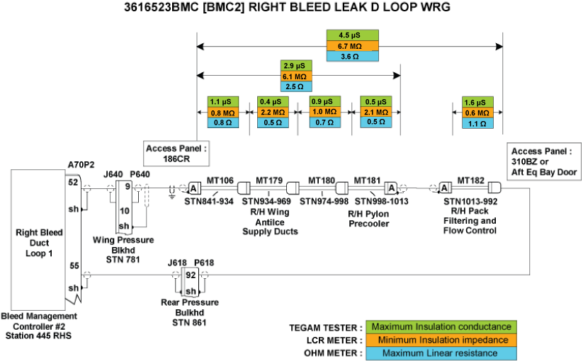 - Perform wiring checks of the remaining wires linking the right BLEED Loops circuit to BMC 2.