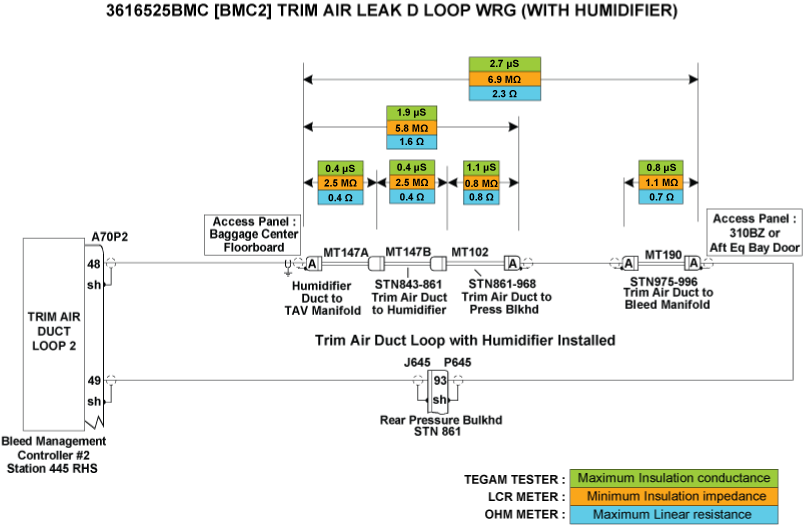 - Perform wiring checks of the remaining wires linking the Trim Air Loops circuit to BMC2.