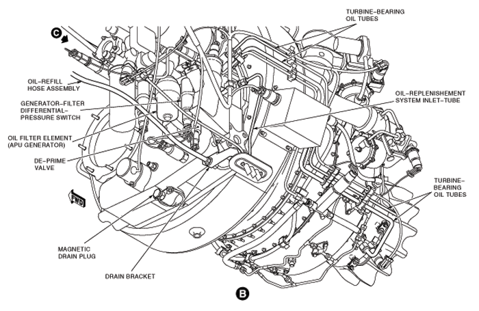 - Install new oil filter elements and perform the servicing of the APU oil.