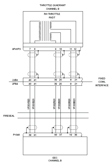 - Perform wiring checks between the fixed cowl interface (2JB4) and the throttle quadrant (AP41P3).