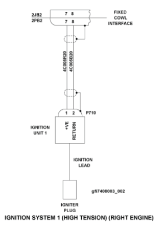 There is an open or short circuit in the low-tension circuit of Ignition System 1. The fault is found between the Engine Electronic Controller (EEC) and the Ignition Unit 1. The low-tension ignition circuits are continuously monitored by the Full-Authority Digital Engine-Controller (FADEC).