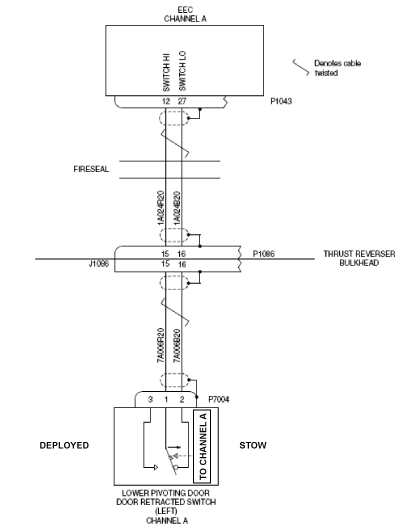 - Perform wiring checks between door lower left stow switches and Right EEC as follows:
