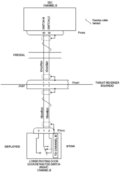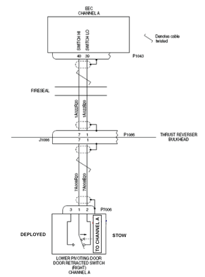 - Perform wiring checks between door lower right stow switches and Left EEC as follows: