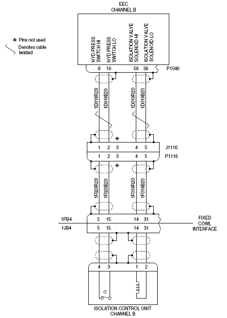 - Perform a check of the insulation resistance of the interface connectors ICU (L43P2), Bypass Disconnect (P1110) and Left EEC (P1046).
