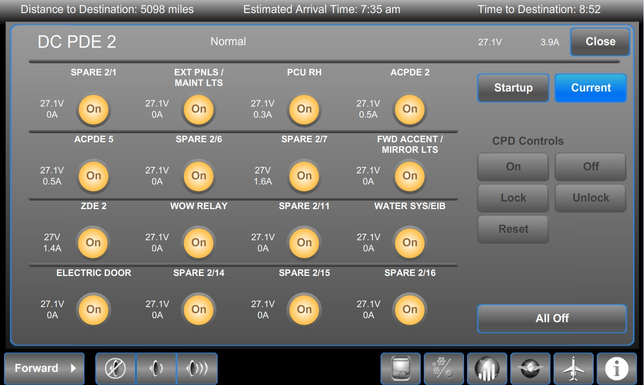 - Using WD Cabin door electric released latch, identify and disconnect the DCPDE output connector. Set the CES maintenance switch to "ON" and attempt to reset the CB.