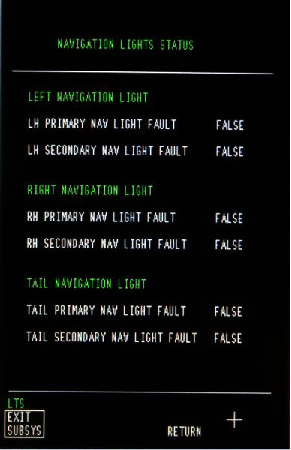 - Check the status of Secondary Navigation Light as follows: Is “TRUE” displayed next to TAIL Secondary light in data page?