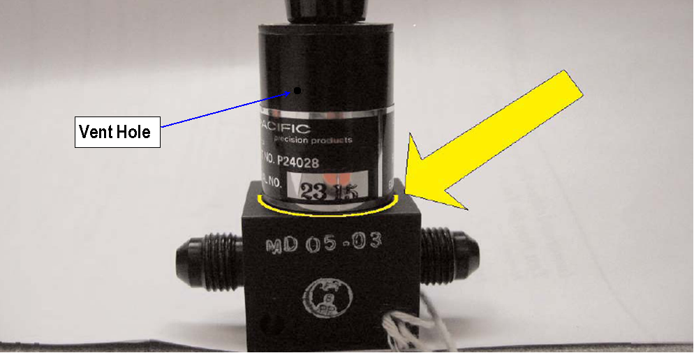 - Use leak detection compound and check for leaks on the High Pressure Capillary Line fittings at the regulator installed on the oxygen cylinder. Verify the capillary lines very carefully at each bottle regulator. Pay close attention to the vent hole on large nut at the regulator. Leakage through this vent hole is an indication that the o-ring has been compromised. The High Pressure Capillary line, due to the small diameter can be damaged with a small force. Work carefully around the line.