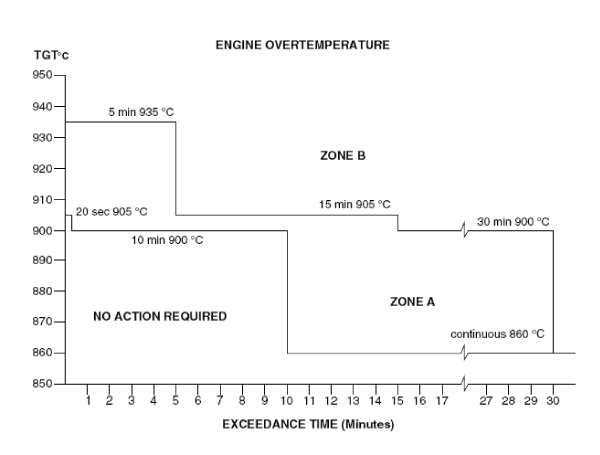 - Use the exceedance profile data above and the engine overtemperature at high power graph to find out if the overtemperature was in Zone A or Zone B.