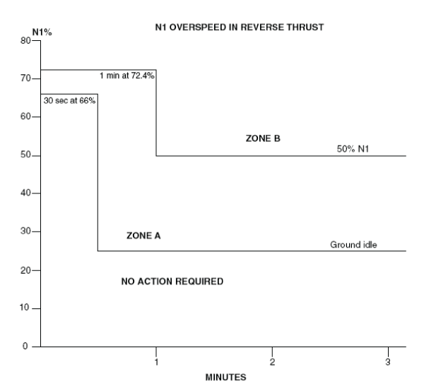 - Use the exceedance profile data above and the N1 overspeed limits in reverse thrust graph (Figure 1) to find out if the N1 overspeed was in Zone A or Zone B.