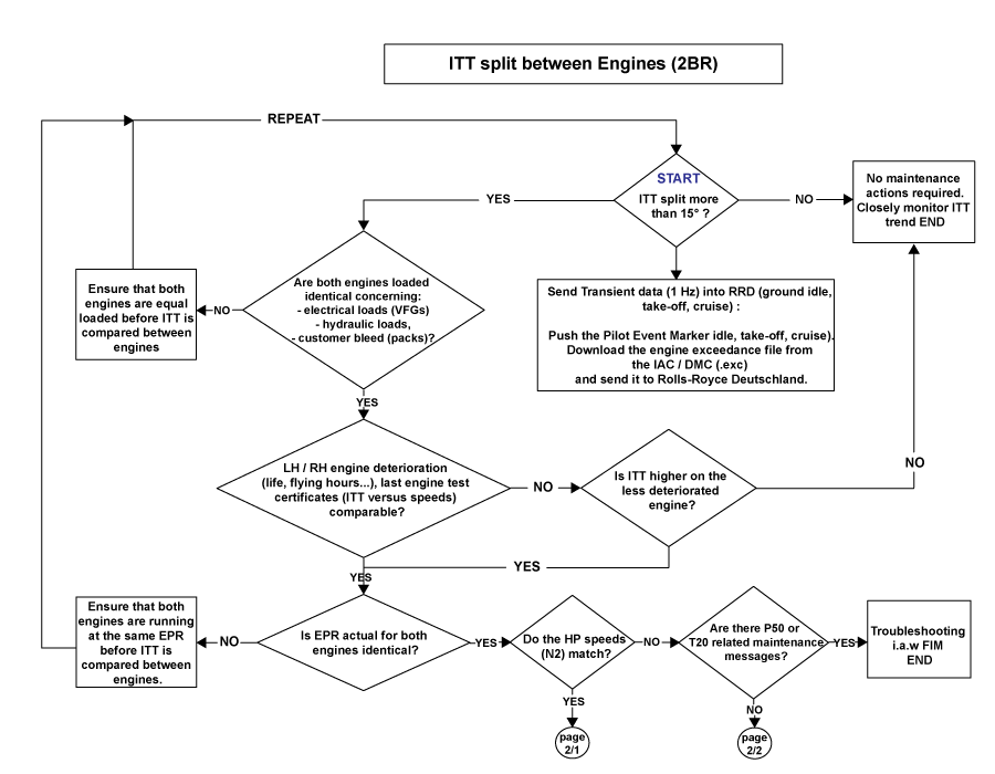 - If they are not identical ensure that both engines are running at the same EPR (before ITT is compared) and go to step 2.